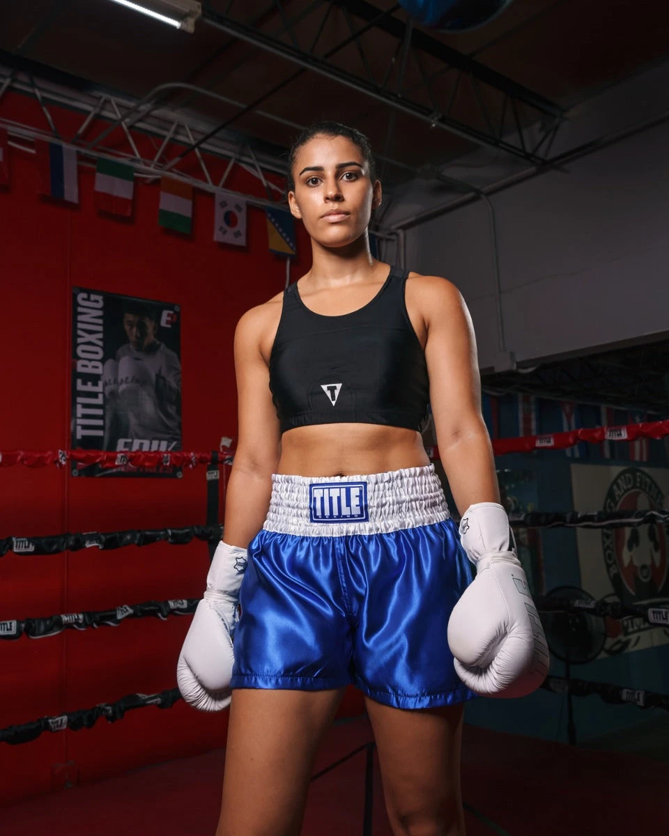 Crafted with a premium blend of Cotton, Polyester, and Spandex, this sports bra offers a form-fitting, compression feel that supports without restricting movement. The moisture-wicking lining is designed to keep you cool and dry during high-intensity battle, while the wide elastic band featuring the TITLE logo ensures a secure fit during every strike and sprawl.